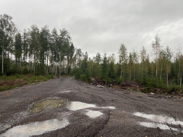 Bilden visar en skog där man dumpat PAH/PAK asfalt som klassificeras som miljöfarligt avfall.